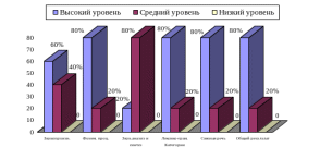 При обследовании речи детей использовалась традиционная в логопедии методика (методика Л.А. Лопатиной). Обследование проводилось по следующим параметрам: звукопроизношение; фонематические процессы; языковой анализ и синтез; лексико-грамматические категории; связная речь.