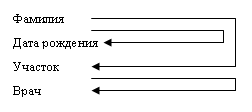 ПАЦИЕНТЫ (ФАМИЛИЯ, ДАТА_РОЖДЕНИЯ, УЧАСТОК, ВРАЧ)