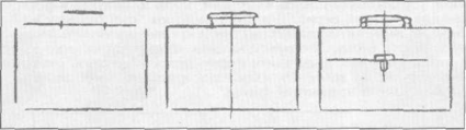 Малюнок потрібно розмістити композиційно так, щоб аркуш паперу був рівномірно заповнений, зображення не сприймалося занадто малим або великим. Враховуючи просторове положення натури (фронтальне), її форму (прямокутну), пропорції тощо, намічають величину зображення щодо формату наперу і виконують загальний начерк моделі (рис. 3). Для цього проводять верхню горизонтальну пряму (довжину портфеля), ділять її на три рівні частини, дві з них відкладають униз, визначивши висоту портфеля. Намітивши тонкими лініями прямокутну форму портфеля та визначивши місце для його ручки, з'ясовують композицію малюнка.