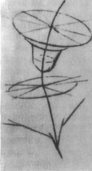 Наступне завдання — малювання квітів (рис.5). Для натурної постановки в початкових класах слід підбирати прості, площинного характеру, форми квітів. Це — ромашки, волошки, шипшина, кульбаба тощо. Всі вони мають нескладну будову, чіткий силует, стримане забарвлення. У середній школі структурну складність образотворчих завдань необхідно збільшувати [50, 7].