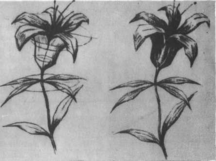 В процесі малювання квітки учні зустрічаються з рядом труднощів. Так, тут не буде чітко виявленої центральної осі, як в листя, її прийдеться уявити лінією, що проходить через стебло і чашечку квітки. Малюнок починають саме з проведення цієї осі. На ній відмічають висоту і ширину моделі, визначають, де розміщені квітка, стебло, листки — тобто накреслюють схему рослини.