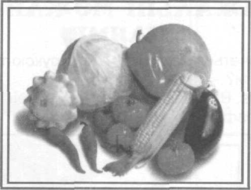 Розгляньте малюнки. Яку форму мають ці фрукти та овочі?