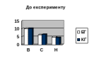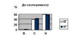 До експерименту отримані наступні дані: у Експериментальній групі ЕГ - високий рівень - 4%, середній рівень - 76%; низький - 20%. У контрольній групі КГ - високий рівень - 10%, середній - 55%, низький - 35%.