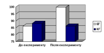 Відсоток приросту по середній сумі показників складає в експериментальній групі 40%, а в контрольній групі відповідно 20%.