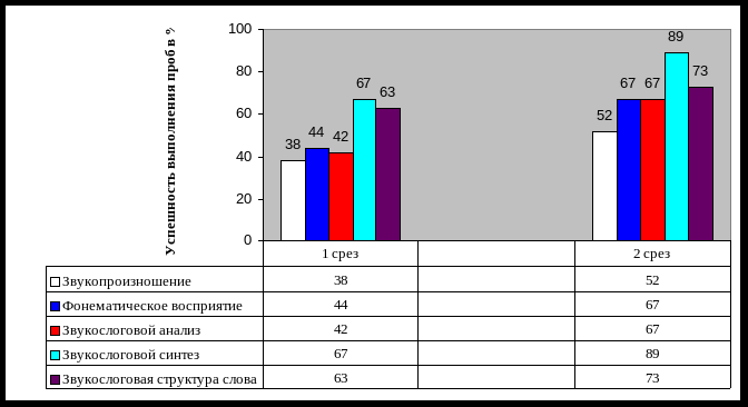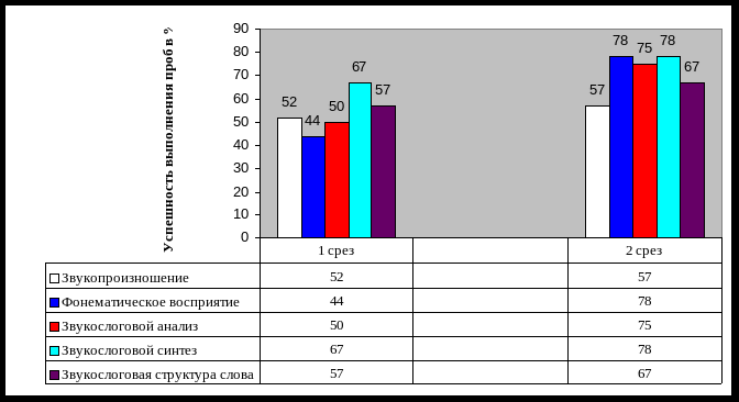 Из диаграммы №2 видно, что у учащегося № 2 после проведения с ним коррекционно-логопедической работы у него улучшилось звукопроизношение на 14%, фонематическое восприятие на 23%, звукослоговой анализ на 8%, звукослоговой синтез на 22% и звукослоговая структура слова на 10%.