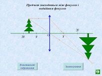 Користуючись ідеальною збиральною лінзою, розглядаємо п’ять випадків положення предмета відносно лінзи та її фокусів (мал. 8):