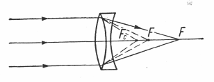 Пізніше вчені спростували твердження Ньютона. Вони навчилися значною мірою долати всі аберації. Спеціальною комбінацією збиральної та розсіювальної лінз можна усунути хроматичну аберацію принаймні для двох довжин хвиль (мал. 8), а також сферичну аберацію. Ми розглянули лише принципову можливість усунення аберації, оскільки справа ця дуже складна. Потрібний великий асортимент оптичного скла з різноманітними показниками заломлення, крім того, треба провести попередні складні розрахунки.