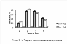 Полученные значения успеваемости и результаты тестирования приведены в таблице 3.1 и схеме 3.1.