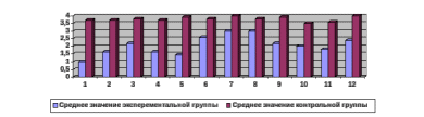 | Средний пока- затель в баллах | 1 | 1 | 1,2 | 1,2 | 0,8 | 1,6 | 2,4 | 2 | 1,6 | 1,4 | 1,6 | 1,8 |
