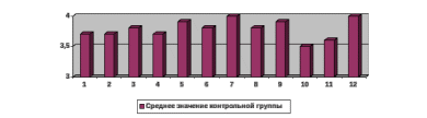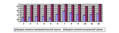 | Средний пока- затель в баллах | 1 | 1,6 | 2,2 | 1,6 | 1,4 | 2,6 | 3 | 3 | 2,2 | 2 | 1,8 | 2,4 |