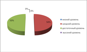 У пяти детей (Никита К., Оля С., Маша П, Ксюша В., Ира К.) отмечается средний уровень сформированости диалогического высказывания (вторая группа детей) – 50%. Они быстро устанавливают контакты со взрослыми и сверстниками. Но у них усталость от общения, стереотипность способов общения. Дети затрудняются отвечать на некоторые вопросы, иногда отвечают на них при помощи подсказок. В речи у них встречаются отдельные неточности, единичные аграмматизмы.
