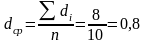 | Средняя арифметическая разностей (d cp) | 0,8 | |||||