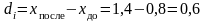 d1 = xпосле – хдо = 1,8 – 1,0 = 0,8