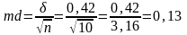 | Стандартная ошиб-ка среднего арифметического (m) | 0,13 | |||||