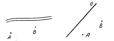 Две точки А и В находятся по одну сторону прямой L. На прямой L найти такую точку С, чтобы сумма расстояний АС и ВС была наименьшей.