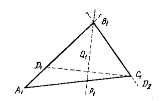 Чтобы найти решение, нужно вначале изучить условие задачи, посмотреть, какие элементы искомого треугольники даны. Для этого начертим произвольный треугольник А1В1С1 (рис. 25) и отметим элементы, соответствующие данным по условию. Пусть это будет сторона А1С1 и угол С1А1В1. Но на чертеже нет разности двух других сторон. А так как для решения задачи мы должны учесть все данные, то нужно показать и разность.