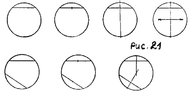 Большое образовательное значение имеет ознакомление учащихся с приборами, применяемыми на практике при решении некоторых конструктивных задач. Обычно эта работа проводится после решении соответствующих задач на построение. Так, например, после рассмотрения свойства перпендикуляра, проведенного к хорде через ее середину, учащимся предлагается найти центр изображенной на чертеже окружности (возможный порядок решения задачи дан на рис. 21 и 22).