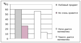 Детям нравится заниматься математикой, большинство указало, что это их любимый школьный предмет, примерно пятая часть опрашиваемых относит его к числу не очень полюбившихся предметов, однако таких, кто бы указал математику как нелюбимый предмет среди наших респондентов не нашлось. Эти результаты нашли отражение в гистограмме 1.
