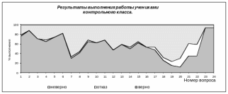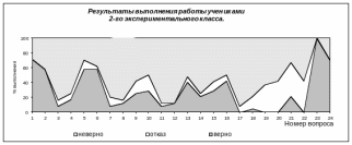 дети бояться задач с длинными и запутанными условиями, с несколькими вопросами. За внешней запутанностью задачи не смогли разглядеть простоту решения, поэтому большинство просто отказалось от решения. Есть и такие, кто взялся решать задачу, нашел один из ответов правильно, а затем запутался и решил задачу на половину (таких в первом экспериментальном классе 40%, в контрольном около 25%) или треть (таких учеников большой процент во всех трех классах, достаточно указать, что не справившихся вообще с заданиями 21 и 22 13%, 26% и 26% в классах соответственно).