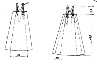 Сарафаны с передом из прямых и спинкой из 4-х кошеных полотен; швы продольные.