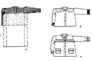 Это дает основание рассматривать подобные женские рубахи как переходную форму (тип). Распространившиеся плечевые швы-вытачки, а затем и швы вызвали новые изменения в крое - появились выкройные, или вырезные проймы и рукава. В 20 - 30-х гг. XX в. рубахи шились без стана, что означало полный отказ от прежних форм и появление нового вида одежды – кофт.