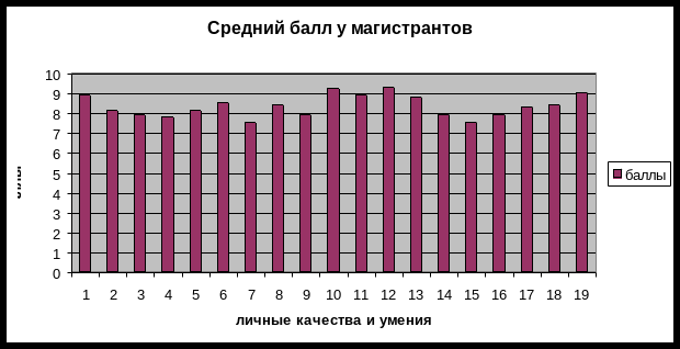 Полученные данные, скорей всего, говорят об объективности одних (в данном случае аспирантов) и необъективности других (магистрантов), так как при планировании исследования ожидалось получить обратные результаты.