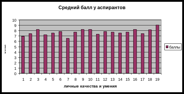 Исходя из полученных данных видно (рис. 2, 3), что средний балл магистрантов почти по всем параметрам выше среднего балла аспирантов.