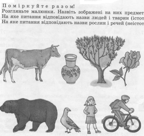 2 група (слабші учні) спочатку ставлять запитання, потім, за допомогою вчителя – записують назви.