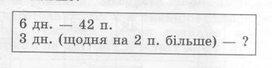 3 год – 18 дрилів 2 год – ? (за годину на 1 дриль більше) Перша група учнів виконує обидві задачі самостійно (до одної, на вибір, придумує обернену). Друга група виконує задачу після пояснення вчителя, другу задачу – за зразком. У задачах учні мають розв’язати вирази виду 18:3, 7•2. |