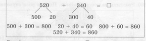 Ознайомившись із таблицею, в якій докладно пояснюється розв’язання прикладів методом розкладання на розрядні доданки, учні розв’язують вирази виду 520+340;