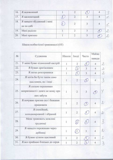 | Вид тривожності | Номер пункта шкали | Сумапо шкалам |