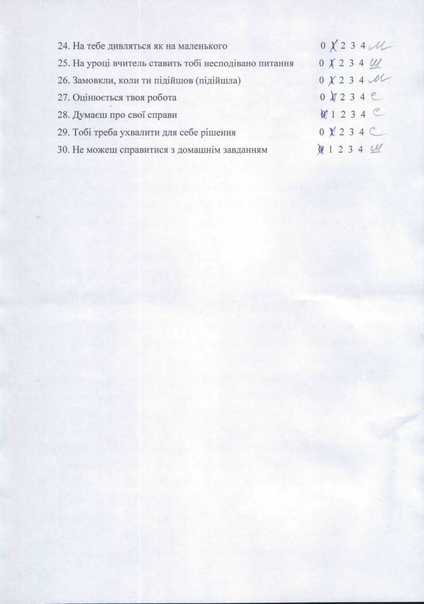 | Шкільна Самооцінна Міжособистісна | 1 4 6 9 10 13 16 20 25 30 3 5 12 14 19 22 23 27 28 29 2 7 8 11 15 17 18 21 24 26 | |