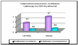 Анализ сравнительные результаты исследования (Диаграмма 2) коэффициента сплоченности детского коллектива и коэффициента удовлетворенности отношениями в коллективе сверстников также позволяет сказать, что имеется положительная динамика в развитии этих коэффициентов, которые являются показателями развития детского коллектива, в целом, и коммуникативной компетентности каждого члена этого детского сообщества. Стоит отметить, что максимально возможный коэффициент сплоченности этого коллектива детей равен 4,3, а максимальный коэффициент удовлетворенности детей имеющимися отношениями равен 1(согласно интерпретации социометрических данных). Отсюда видно, что за обозначенный период обучения детей произошли качественные изменения коэффициентов: