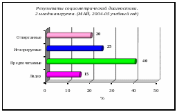 Анализ результатов проективной социометрической методики (Диаграмма 3) позволяет отметить, что в данной возрастной группе есть дети, имеющие разный социометрический статус: