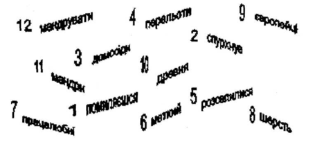 Читання за карткою "Дощик". (Прочитати слова з максимальною швидкістю в порядку зростання номерів.)