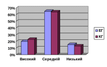 У результаті проведення діагностики було виокремлено дві експериментальні групи, що стали базою для впровадження методики формувального етапу педагогічного експерименту – учні початкових класів Брянківської загальноосвітньої школи №9. Таким чином, кількість дітей у контрольній групі (ЕГ ) становила 27 особи, у експериментальній групі (ЕГ) – 25. В експерименті взяли участь 52 дитини молодшого шкільного віку.