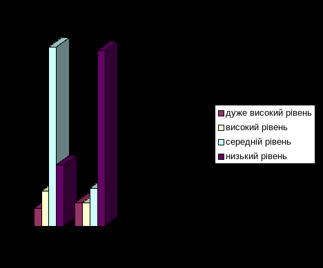 Рівень сформованості пізнавального інтересу учнів в експериментальних та контрольних класах наприкінці експерименту