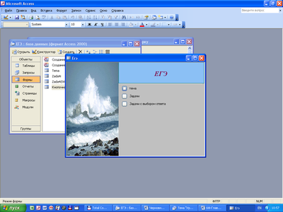 С помощью этой формы можно легко перемещаться по формам Tema, Zada4i, Zada4iSViboromOtveta. В дальнейшем можно будет модернизировать эту форму посредством добавления новых объектов.