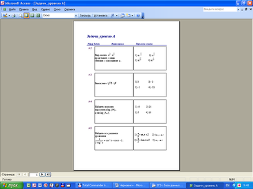 На базе этого запроса формируется отчет Задачи_уровень А. Поле ответ не выбирается. Этот отчет будет иметь следующий вид.