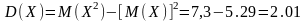 Используя формулу D(Х)=M(X)2-[М(Х)]2 можно найти дисперсию гораздо быстрее: