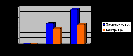 Первый этап – констатирующий. В ходе эксперимента были сформированы контрольная и экспериментальная группы на базе учащихся 2"Б" класса. Всего в классе 24 ученика, соответственно в экспериментальной и контрольной группах было по 12 учащихся.