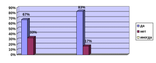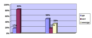 Проанализировав данные результаты можно сделать вывод, что в экспериментальной группе 67% родителей знают друзей своего ребенка, только в двух семьях (33%) не знают. В контрольной группе 83% родителей знают друзей ребенка, только в одной не знают.