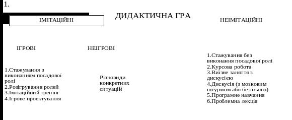 Класифікація наведена на рис.7.1, в центрі якої є дидактична гра - найскладніший метод активного навчання контекстного типу.
