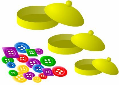 Пуговицы трех размеров (разной формы и цвета) просим ребенка разложить в три коробочки также трех размеров (большая, средняя и маленькая). Вместо пуговиц можно использовать кружки из плотного картона.