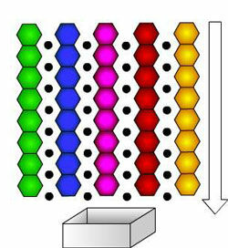 | Используются предметы разного размера, цвета и формы: 2-3 мячика из разного материала (резина, пластик), апельсин, несколько кубиков, 2-3 круглых яблока, клубок шерстяных ниток, цилиндр (жестяная баночка из-под кофе), конус, овоиды (яйцевидные тела, например, из-под киндер-сюрпризов). Ставим на пол небольшие воротца - можно просто обозначить их двумя книжками, или жестяными банками, или коробкой. Предлагаем закатить их по очереди в воротца (толчком). |