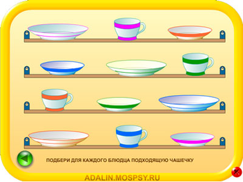 Цель упражнения: формирование умения обследовать предметы, сравнивать их существенные признаки и делать причинно-следственные выводы на основании этого сравнения.