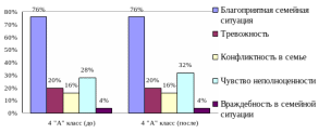 Таблица 2. Результаты исследования внутрисемейных взаимоотношений в 4-х классах на начало и окончание опытно-экспериментальной работы