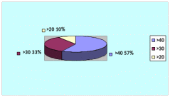 Возраст у 57% родителей превышает 40 лет, у 33% родителей превышает 30лет, у 10% родителей превышает 20лет.