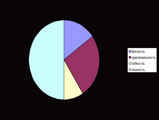 | Факторы | беглость | оригинальность | гибкость | точность |