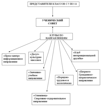 В школе введено и функционирует школьное самоуправление. Благодаря четко выдержанным этапам введения самоуправления, учащиеся понимают суть своей деятельности. Достигнуты следующие результаты: